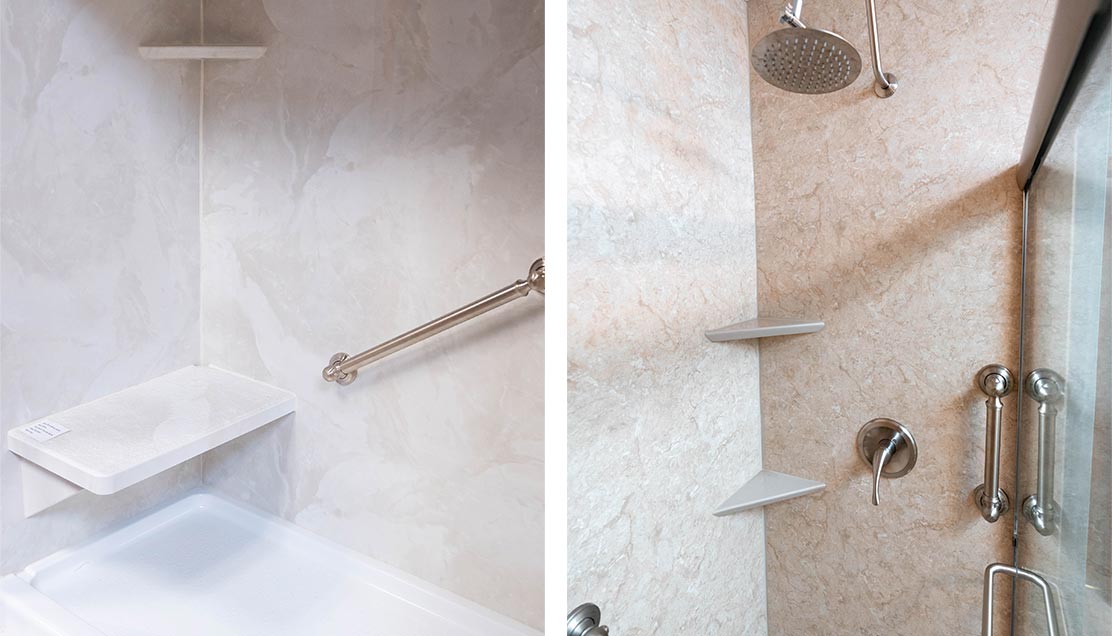 We know, when you hear “accessible bathroom,” you instantly picture a sterile, unattractive space as you’ve seen in hospital rooms. We’re here to tell you that accessibility can be beautiful as well as functional. Our team will work with you to design comfortable, attractive spaces to keep you safe.